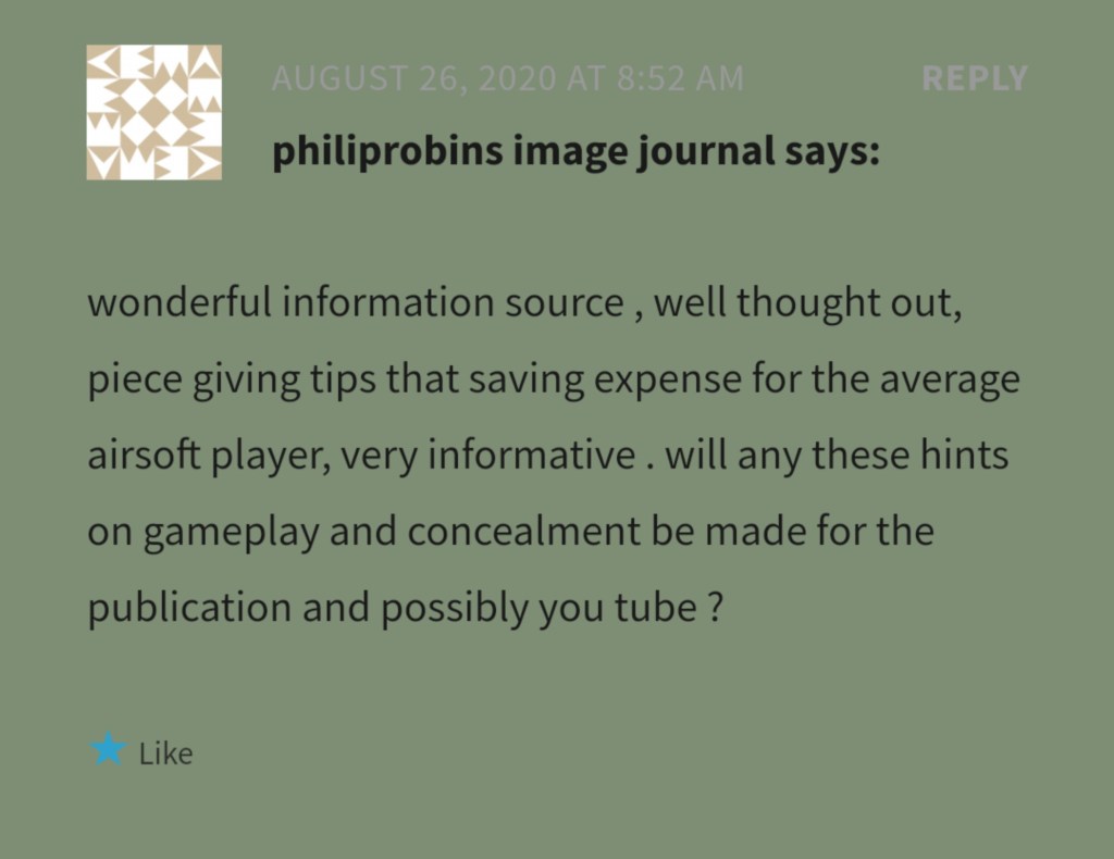 At this moment in time, I have absolutely no plans to do a YouTube channel. And there are reasons. First and foremost, I think that Airsoft YouTube snipers are becoming too common, and largely driven by illusions of fame and fortune, trying to cash in on headshot videos with clickbaity titles (that’s largely, not all, there are a few I can sit and watch). It’s not the right motivation, for me personally, and I don’t want to be tagged as a YouTuber given the reputation of some. I don’t blog because I want millions of fans helping push ad revenue so I can make a quick buck – I have a day job for income and I don’t enjoy lavish lifestyles. I do the blog purely out of a love for airsoft sniping and I do it to help others, especially those new to it, if not then I hope it either generates ideas or conversations between more experienced snipers who may then see something and find a better solution to it, which if they choose to share, benefits us all. The endless cycle of editing doesn’t appeal either, I’d rather be spending time doing other things. Most of the blogs are written either in the bath, while travelling, or camping, or when I’m doing tech work or making a ghillie and I’ll take photos as I go.