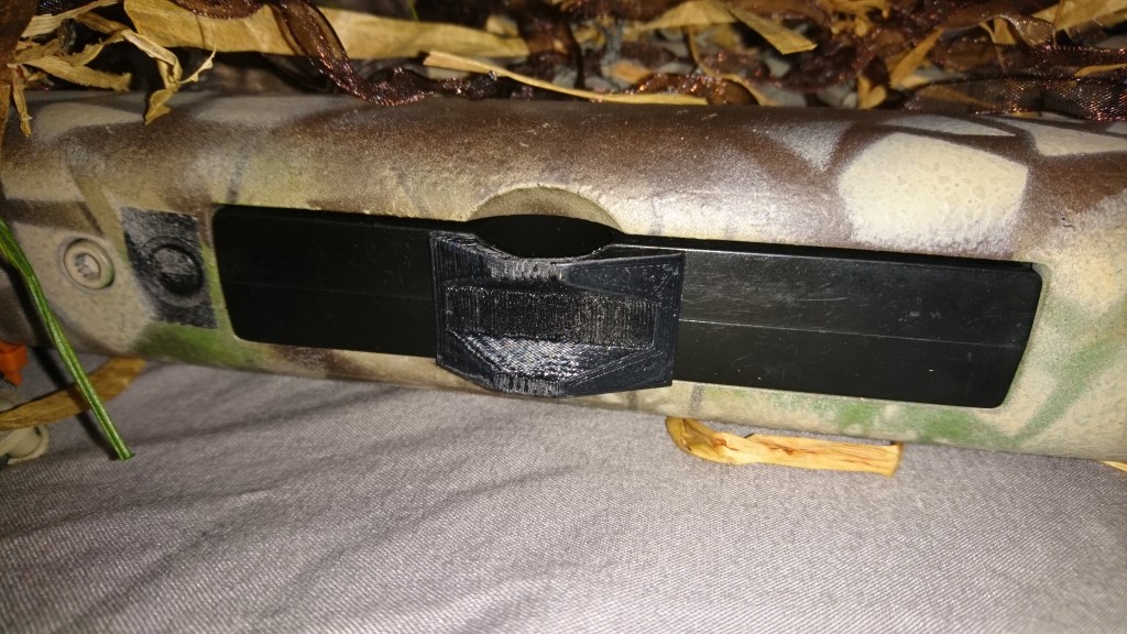 Another thing worth looking into for this style of sniper magazine are pull tabs (link here). Usually 3D printed, these give you something to get hold of when changing the mag, without being too obtrusive and ruining the flat profile that is so useful for getting into more compact positions. Don’t be tempted to drill a hole and pull some cord through to make a loop – this is just asking to snag on everything and rip the mag out or get you stuck on something.