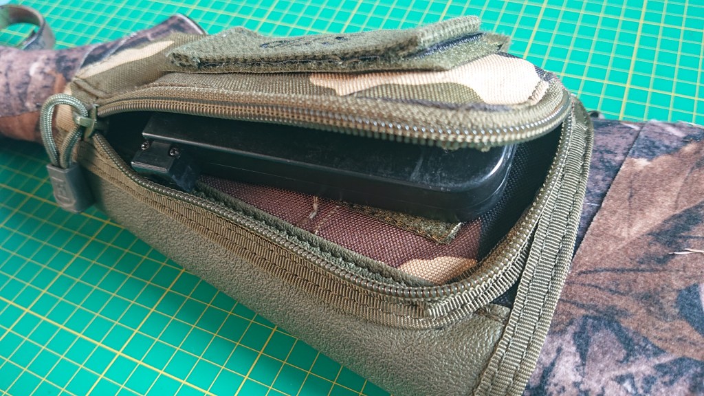 This is my primary reload point. It’s about as close to the magwell of the gun that you’ll ever get, so the movement from pouch to gun is as short as possible. Reduce movement = increase stealth. These don’t cost a lot, are zip opening which is easy to do with gloves on, and quiet. Avoid the ones with the big padded bits on the top – this will just elevate your head meaning you may have to add a scope riser or high scope rings, and you want to keep as low profile as possible. Unless you’re not taking hits, you’ll never need to reload twice in a hurry; the one “emergency” mag is enough for that phase of play.