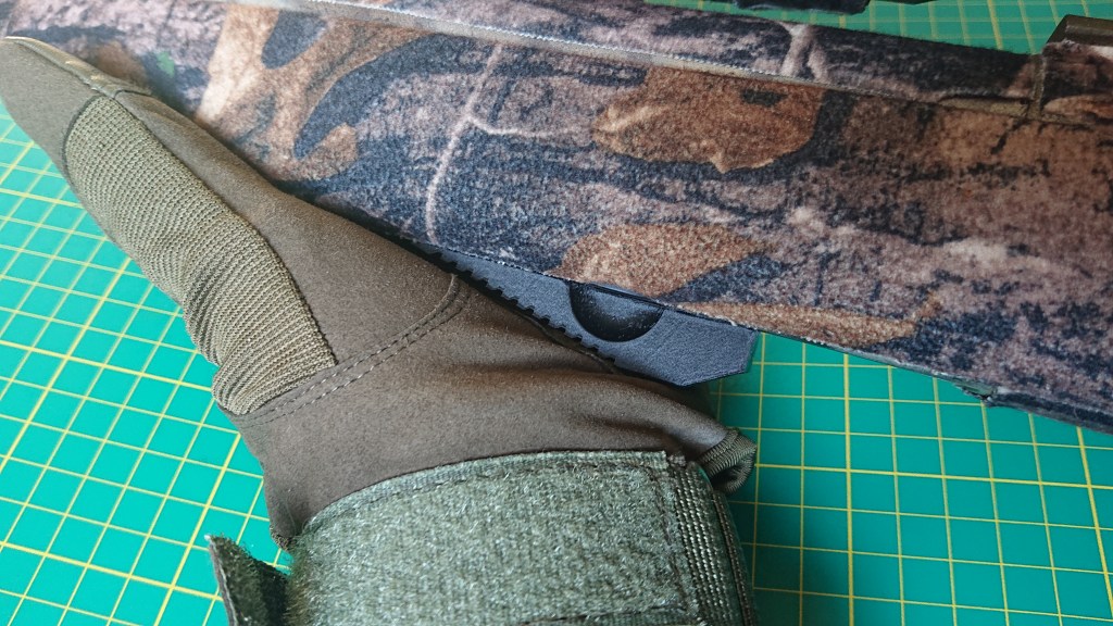 The grippy side of the magpull gives a VERY good amount of grip, and a very good hold on the front of the rifle, which is something I’ve never bothered about before but in wet weather might be handy. Not that I’ve ever dropped a VSR before. It’s a grip design that might be useful applied elsewhere too, which I’ll have a think about and pass back to the designer.
