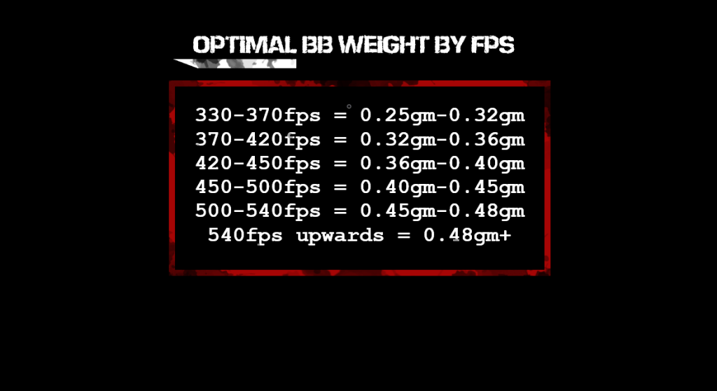BB Weight – A heavier bb travels slower than a lighter bb. That will be a factor in the length of your barrel. Usually, you’ll find people recommending to just go with the absolute heaviest bb you can buy, and many will listen without question. But there’s actually a most efficient weight (in terms of energy) depending on your fps output.