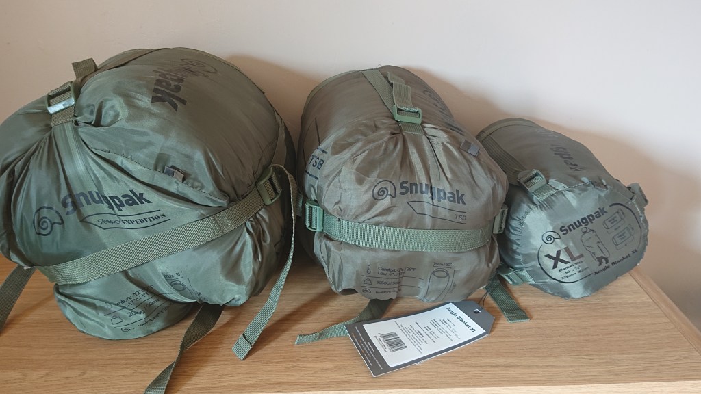 To that end, I’ve got two sleeping bags. Both Snugpak, because they’re cheap but decent.