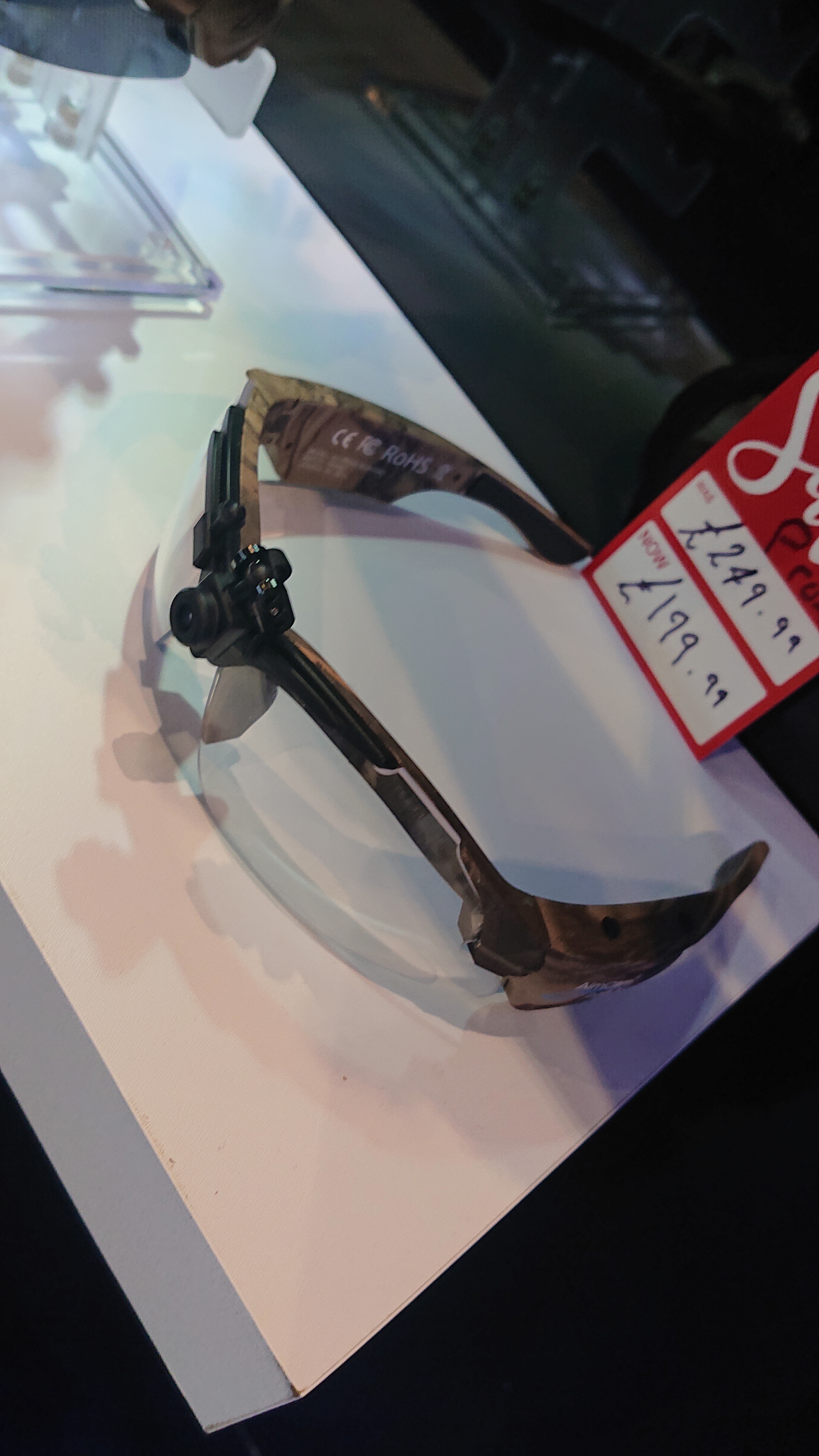 Cameras, again I’ve ranted about on several blogs now but there is a culture of “film” making in airsoft so it’s an unavoidable one to bring up. There are a lot of different cameras on the market and a lot of ways to wire them up to batteries to capture all the action. One of the more interesting solutions I saw recently at a gun show was from a company called AimCam, who make glasses-mounted cameras which seem much tidier and capture a better angle than sitting on the head. The glasses are ballistic rated and suitable for airsoft too. All the battery and sim card bits sit in the frames, and the camera can be positioned above either eye for looking down optics. A battery pack can be added for a full days filming. Despite my disdain for cameras, I did try some on and they’re a lot easier than having straps wrapped round your head or kit for other cameras, so I will give them a thumbs up.