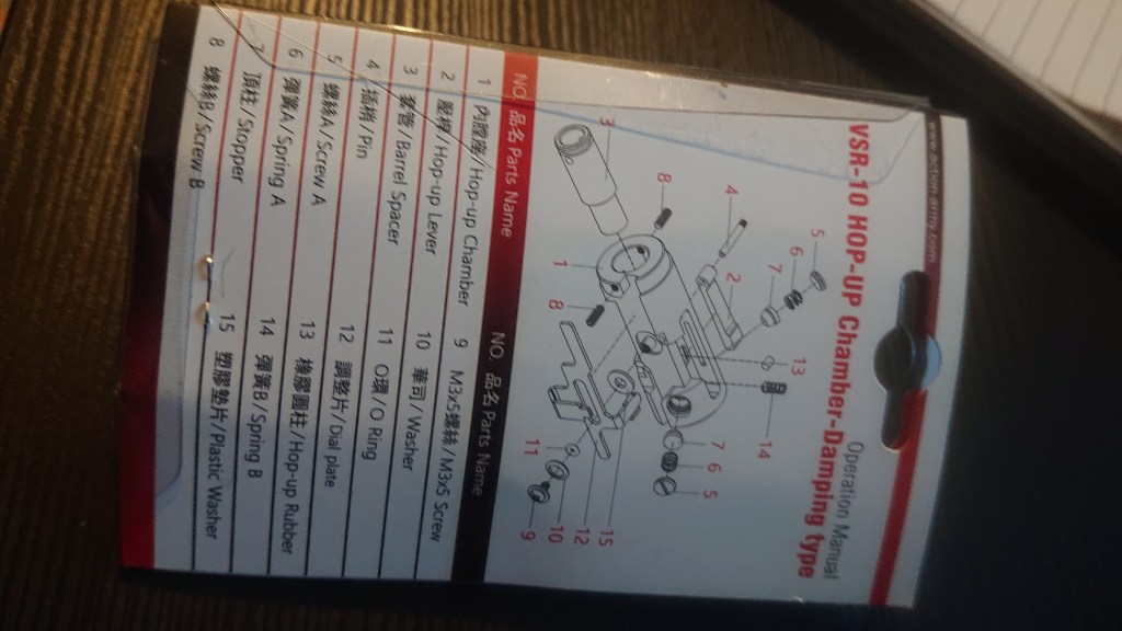 I got a message late one evening from the guys at Skirmshop UK to ask if I’d like to test out the new Action Army VSR hop chamber. Less than 14hrs later it arrived, which is ideal when you need things to arrive on your days off work so you can plan your tech sessions. Then it was straight to the workbench. I must admit I’d missed the launch of this, and haven’t seen it in anyone’s rifles. It was more curiosity than excitement, all my guns have good hop setups in so it isn’t something I’ve been specifically looking for.