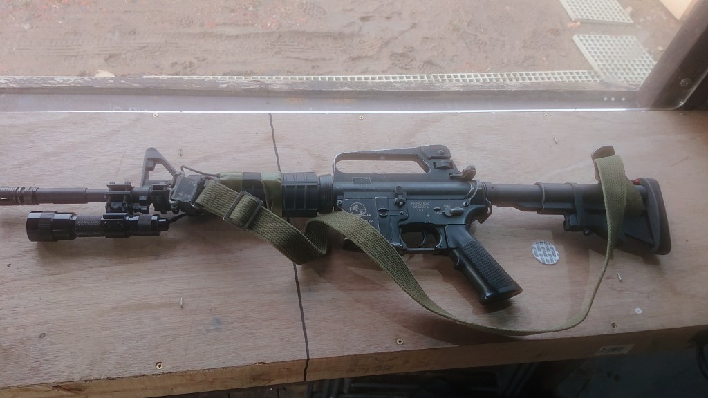 A solid M16 stock (£5), an M16A2 upper (£2), and an SR-25 sling (free). My first thought then is to build an M16 because I can and it’s cool, although quite what variant will depend on what sort of handguard I can source. It’s a good option for both my US and UK loadouts, and potentially many others. UKSF used extensively the M16A1 and A2, and they would be fine but the most appealing variant is the M16A1 with M203 underslung grenade launcher.