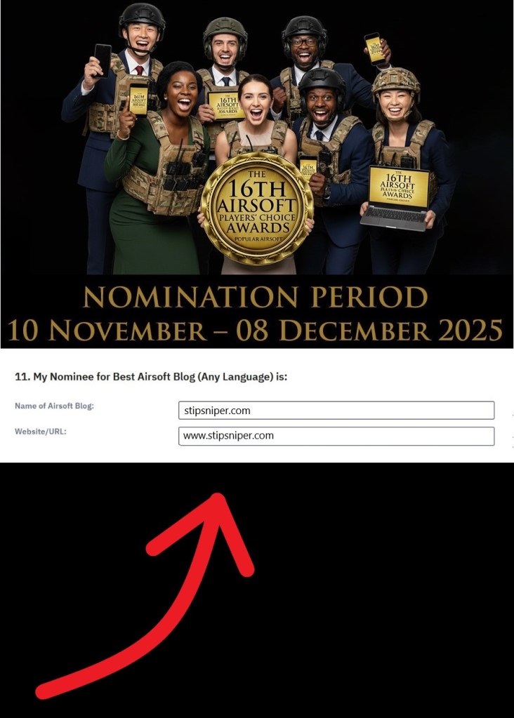 It’s nomination time! The annual awards are back and I’m hoping to get some votes in the Best Airsoft Blog category…